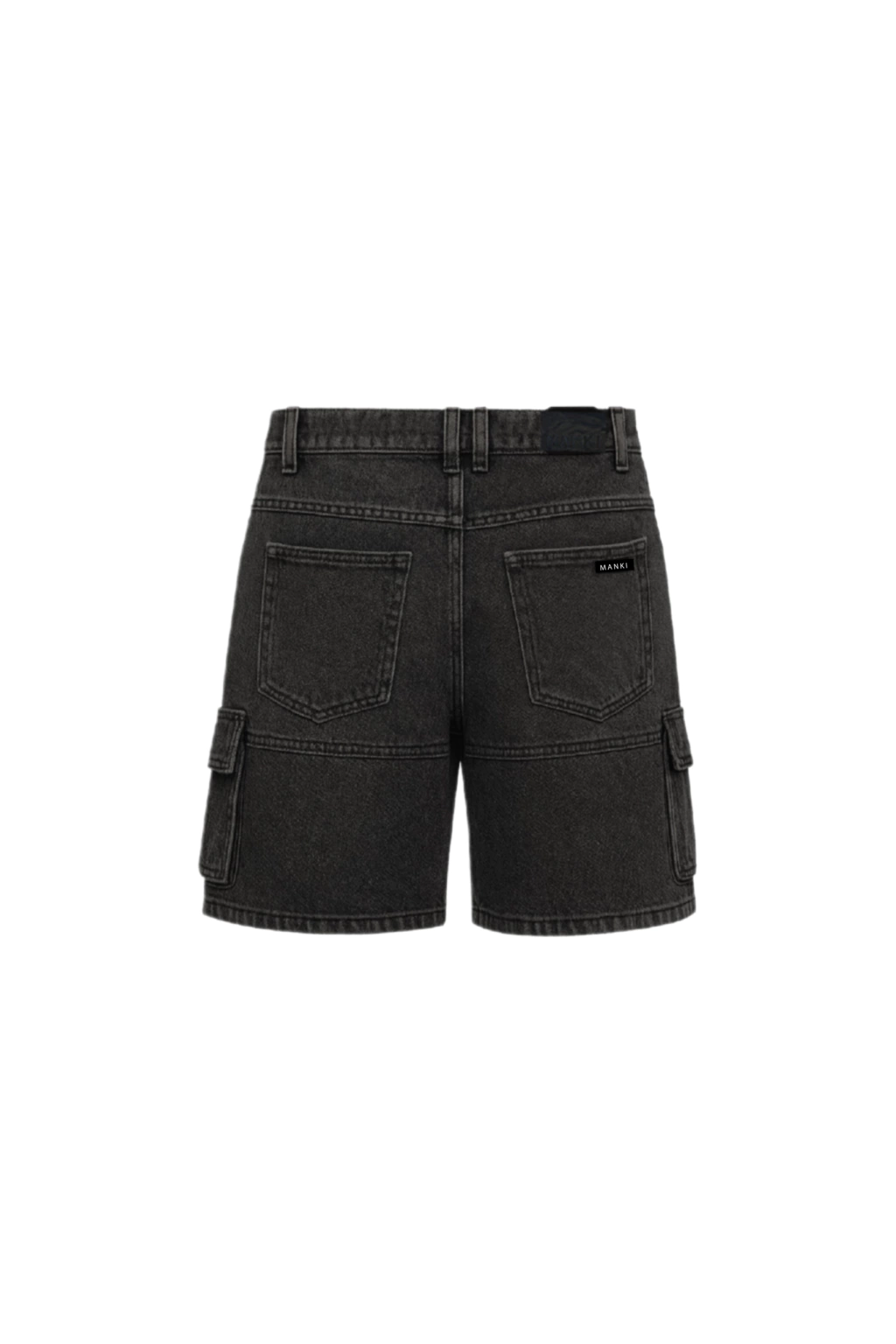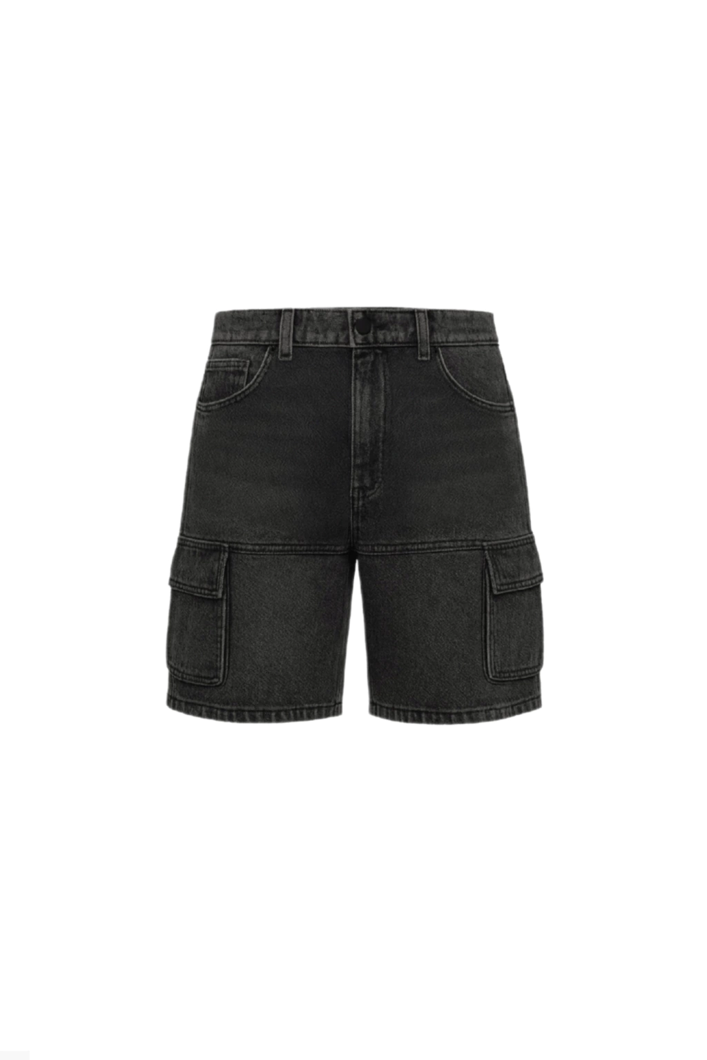 Bermuda cargo de jean de calce regular. Con bolsillos delanteros y traseros, también cuenta con dos bolsillos cargos en los laterales y recortes horizontales.