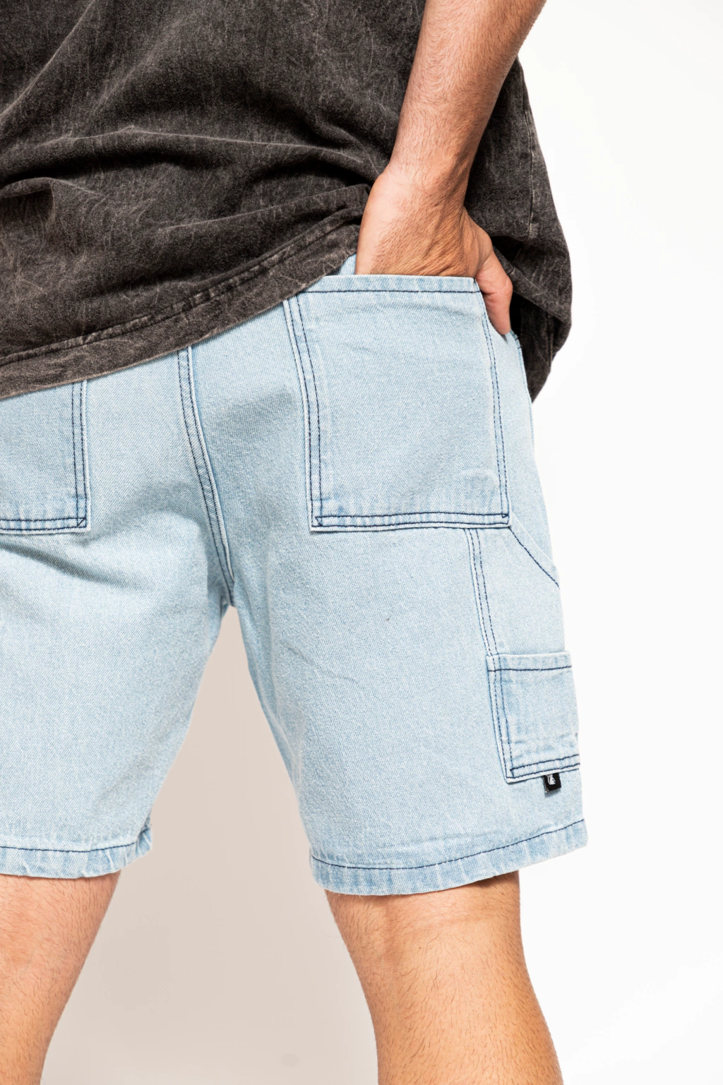 Medida C: Medir desde el borde la costura lateral hasta la costura final de la pierna de la bermuda, en linea recta.