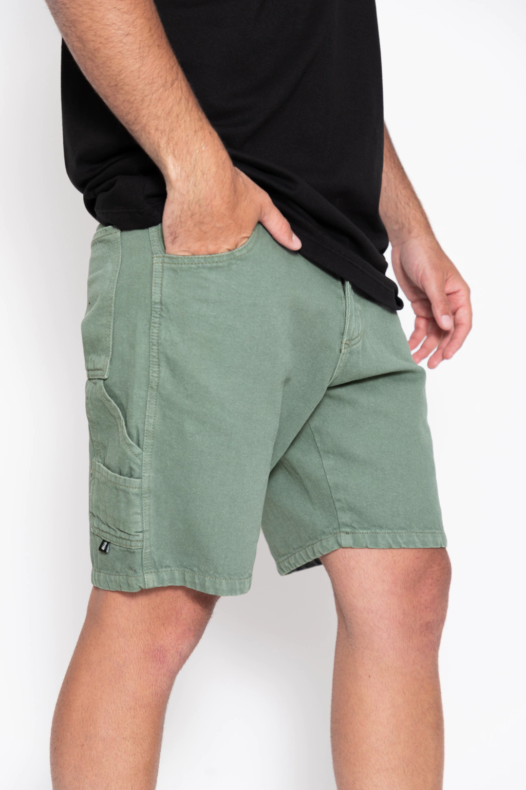 Medida C: Medir desde el borde la costura lateral hasta la costura final de la pierna de la bermuda, en linea recta.