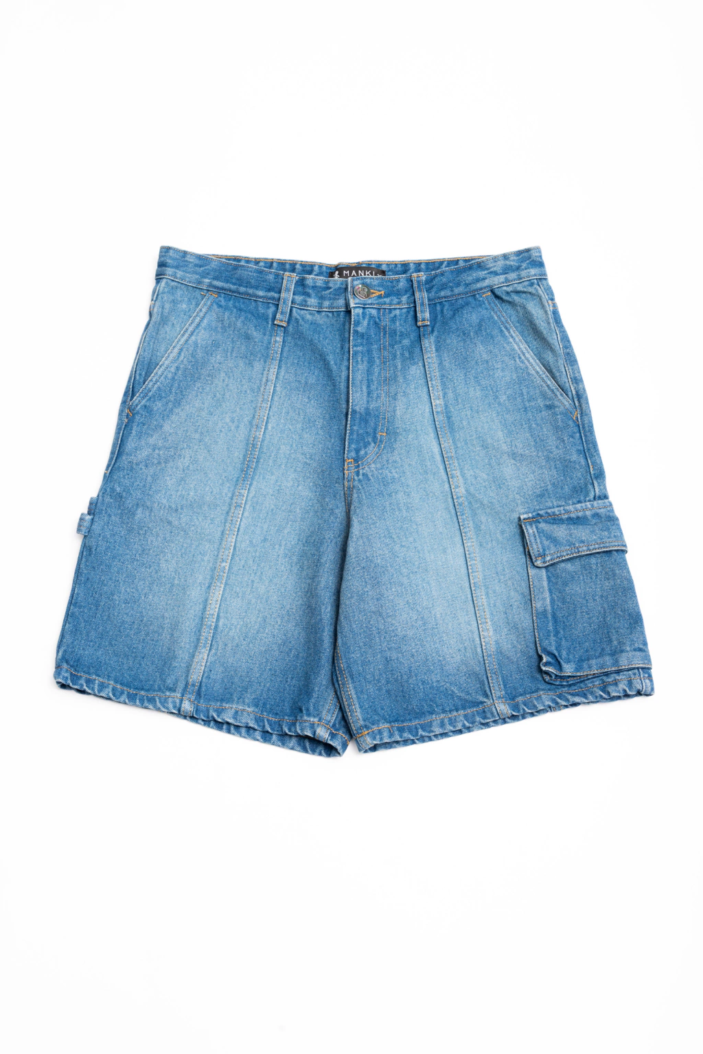 Bermuda cargo de jean de calce regular. Con bolsillos delanteros y traseros, también cuenta con un bolsillo cargo en el lateral, recortes verticales y doble tira carpintera.