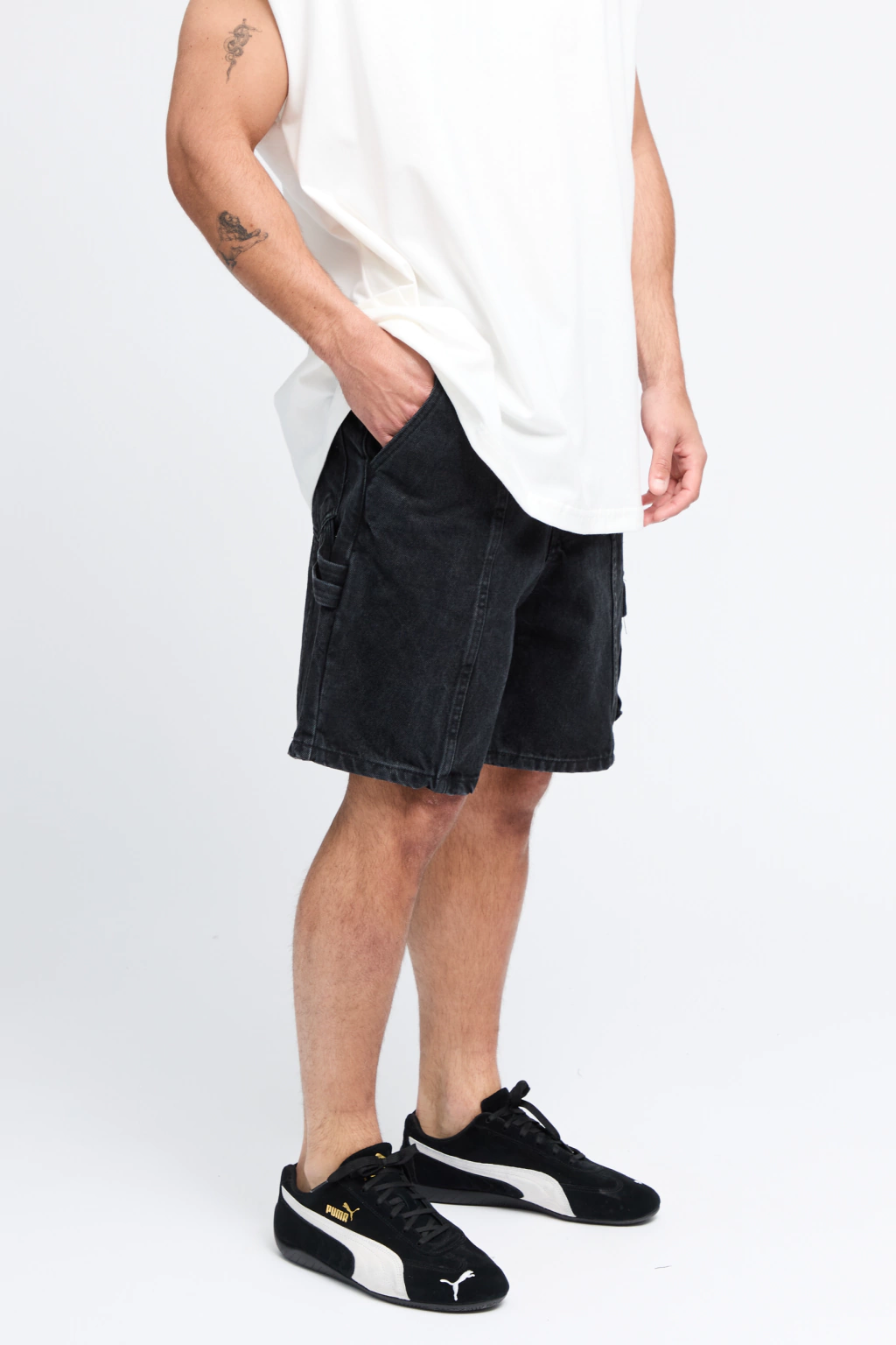 Bermuda cargo de jean de calce regular. Con bolsillos delanteros y traseros, también cuenta con un bolsillo cargo en el lateral, recortes verticales y doble tira carpintera.