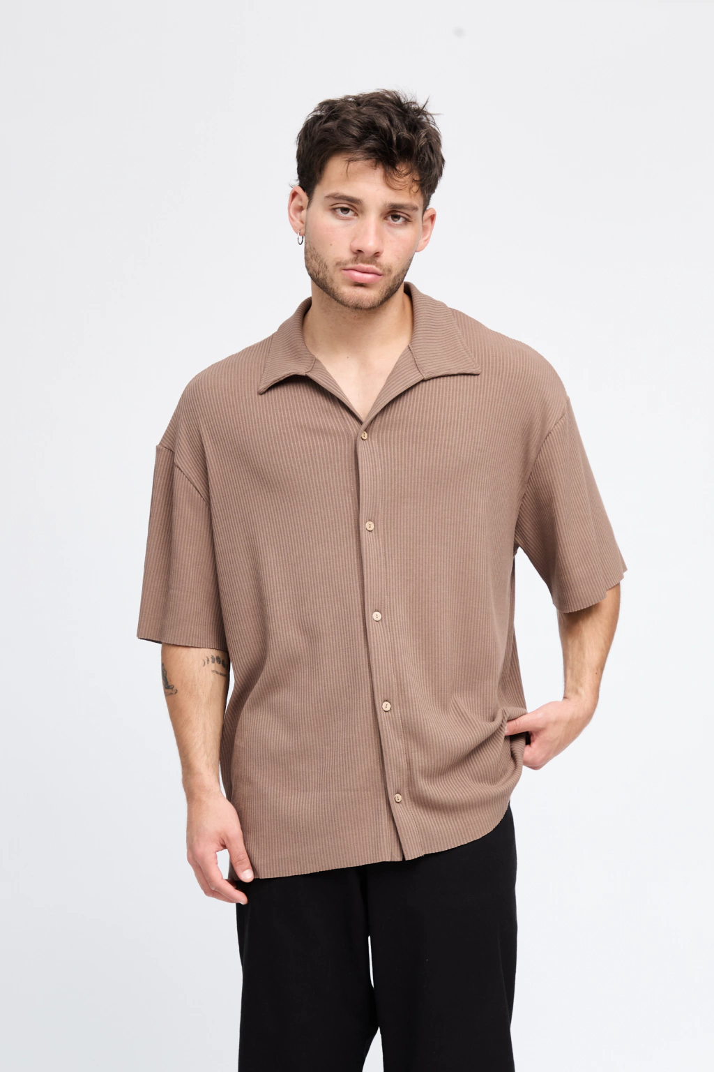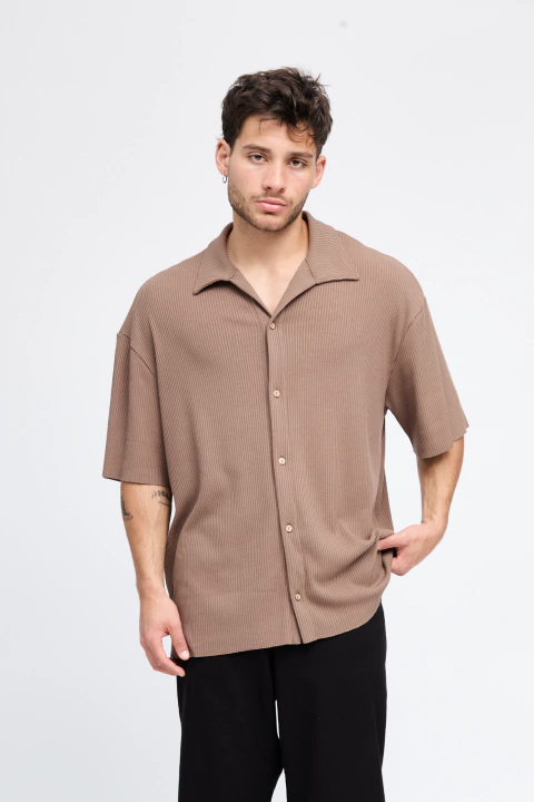 Camisa de calce boxy, manga corta. Confeccionada en morley liviano, cuenta con cinco botones personalizados a tono.