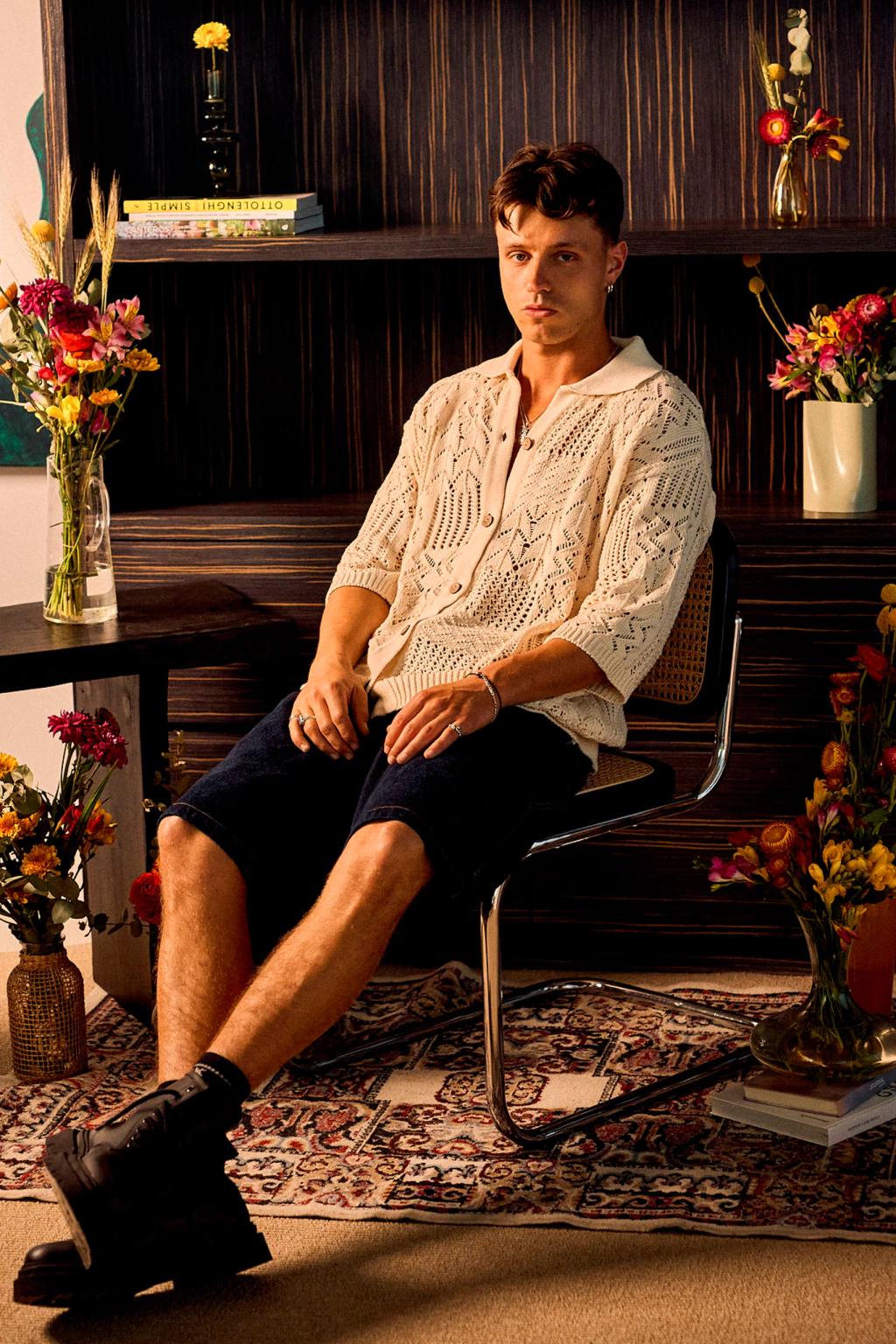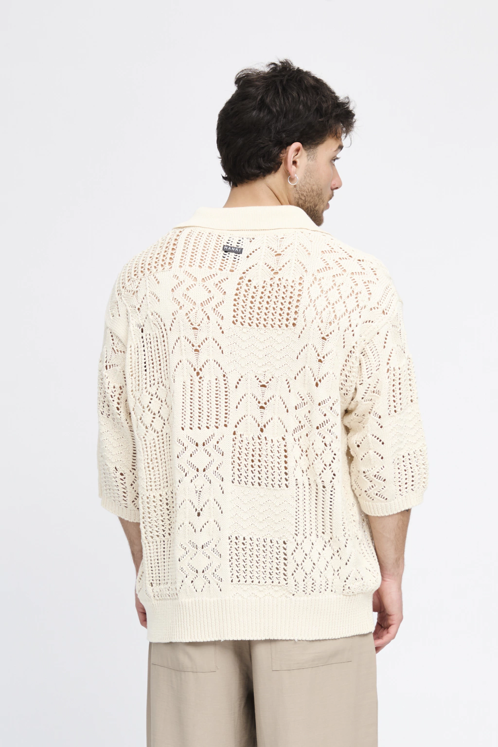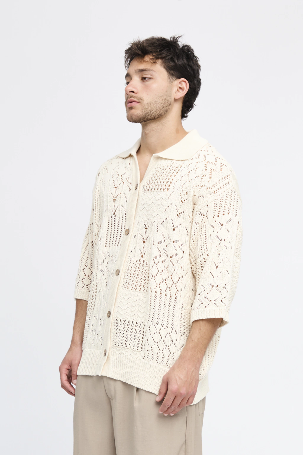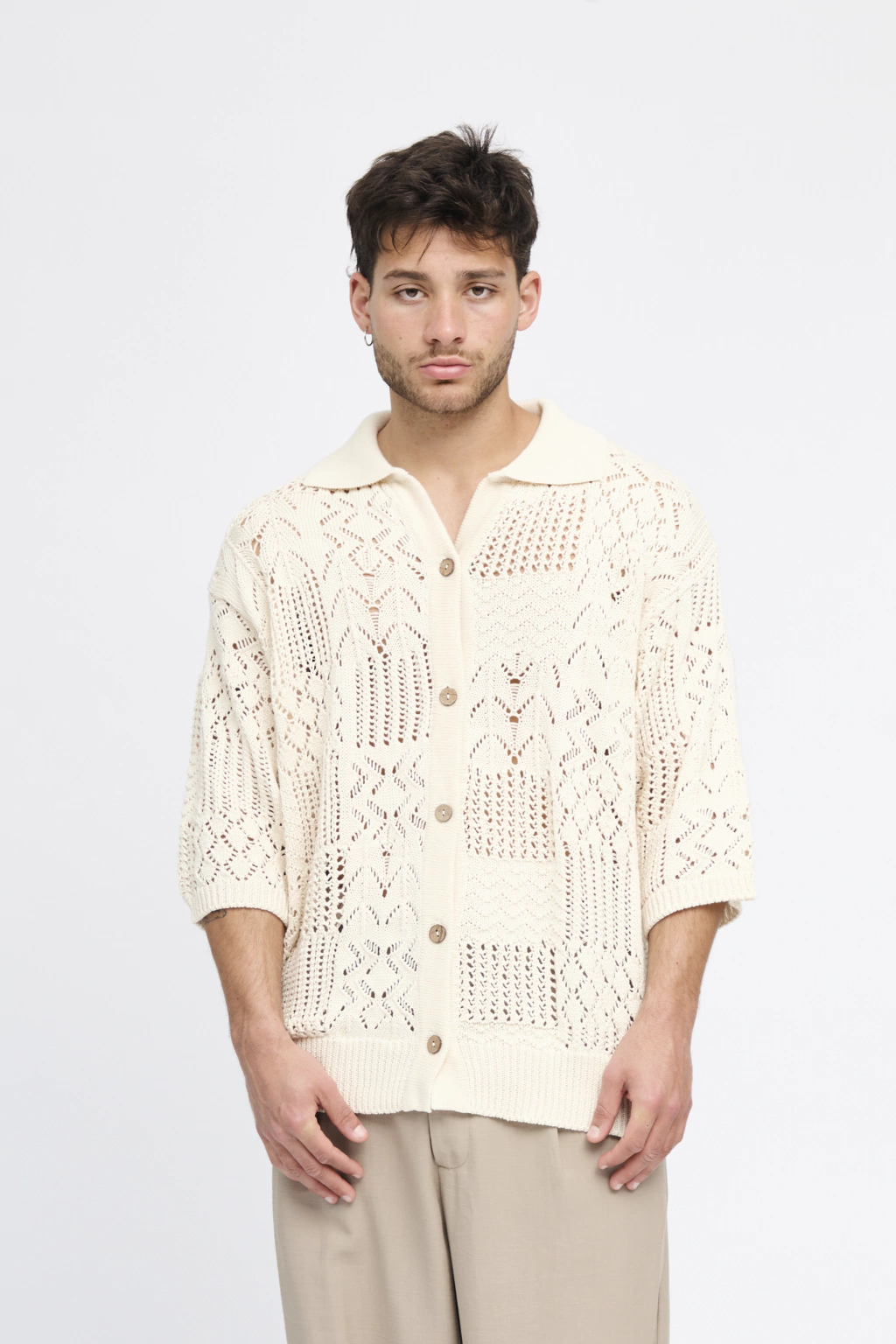 Camisa tejida con un hilado premium de algodón. Con una combinacion de puntos generando un diseño único. Cuenta con cinco botones a tono en el frente.