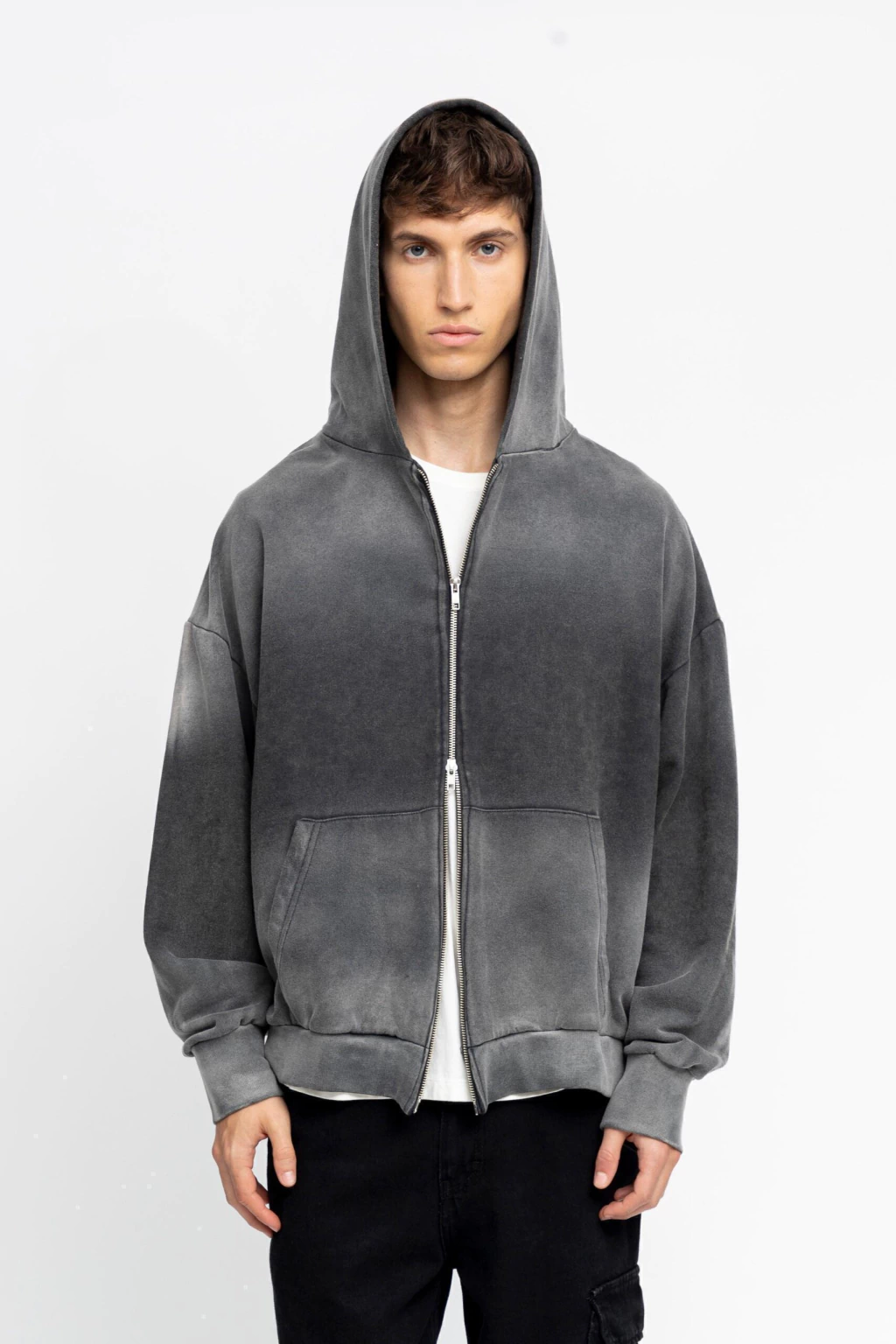 Campera de frisa con calce regular. Cuenta con un cierre doble carril para mayor practicidad, capucha amplia y bolsillo canguro.