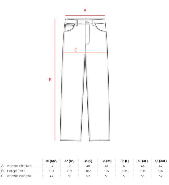 Medida B: Medir desde el costado superior del jean hasta el tobillo donde termina.