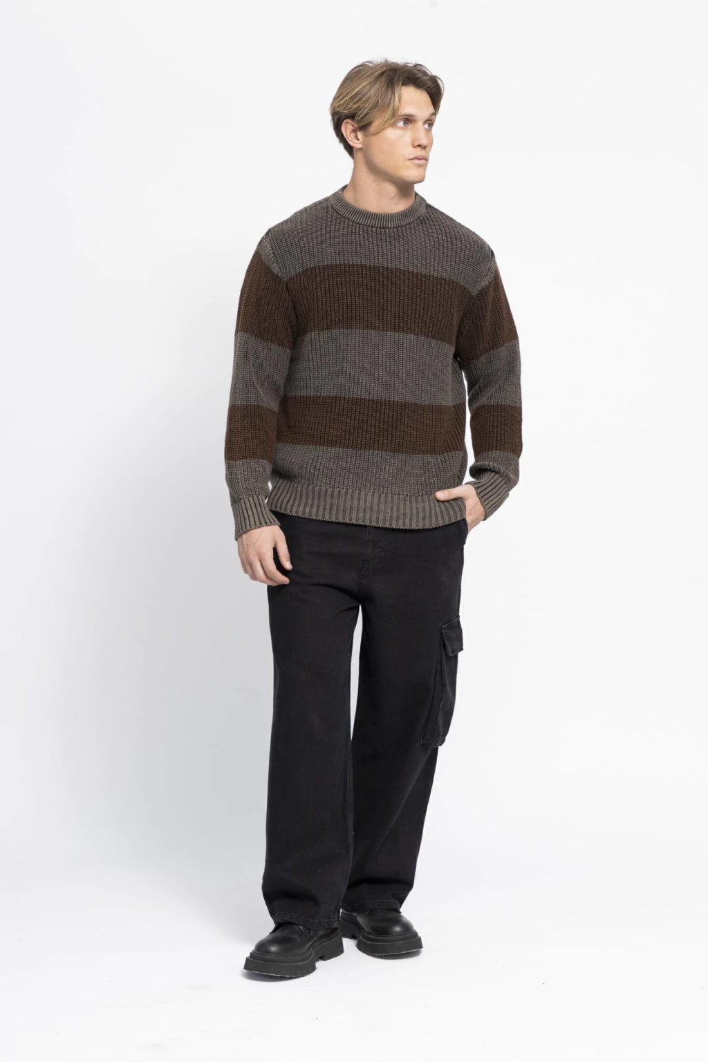 Sweater escote redondo de algodón, manga caida , suave al tacto. Con calce regular.
